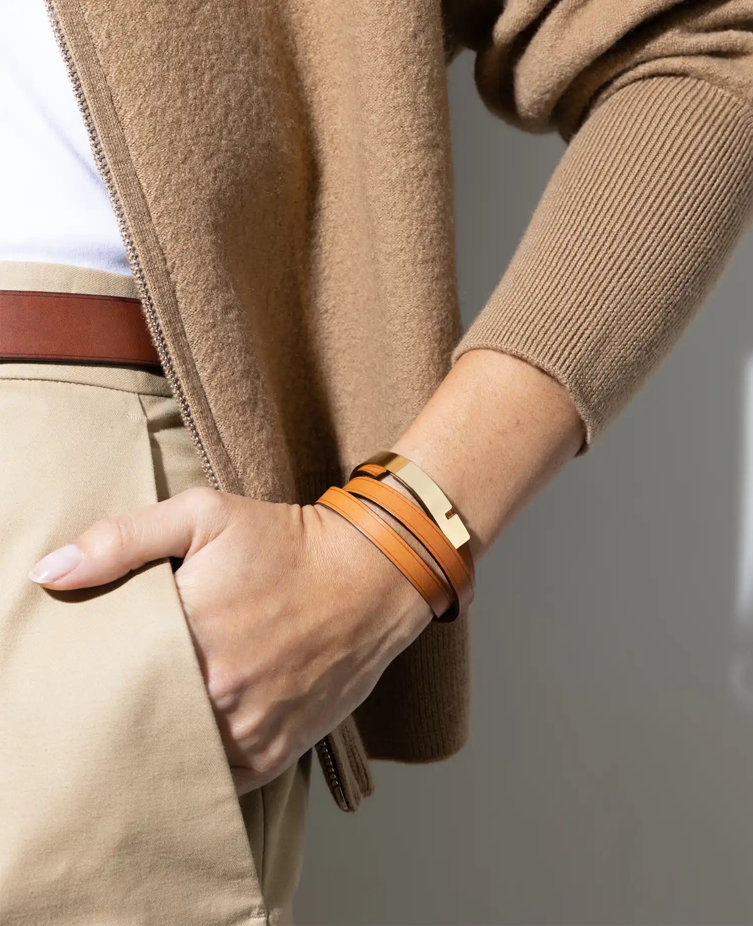 The exclusive design of the Spartiate belt is created for both women and men. Its double loop in 316L surgical steel, available in silver, aged brass, or matte gold finishes, ensures perfect support and a distinctive style. This gender-free concept, a signature of Ursul, makes each belt a universal accessory, designed to enhance every silhouette.
